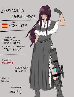 Luz is the cold temple keeper/nun of the Diamond Temple. She takes her role seriously and often goes around the temple to check out for intruders, which takes down with her taser rifle. She's strong and has a perfect hearing in contrast to Judith's perfect vision and Rui's strenght. Makes fun of Rui when he cries to his shows but she never leaves his side