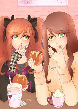 Joy (left) and Judith (right)They're twin sisters, Judith is the oldest. Joy has a more scenecore style and works as an actress, she's outgoing, loud and fun. She tries to look older by putting on makeup only to look like a kid experimenting with it. Judith works as a nun/temple keeper, she's quiet and likes to wear cream colored and mute colors comfy clothes. She shares the sappy tv show hobby with Rui. She has a perfect vision. They only see each other once a month when Judith is off duty.